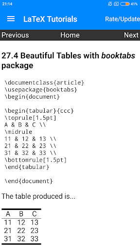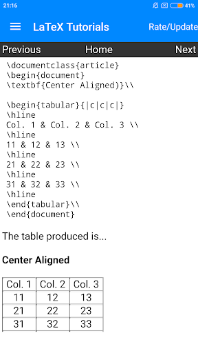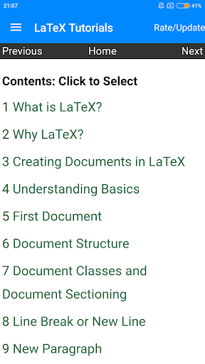 튜토리얼은 고의로 라텍스 사용자에게 고의로 제작되었습니다. 모든 자습서는 완전합니다. 학습자면에서는 일을하지 않습니다. 자습서를 입력하고 복사하거나 출력을 가져올 수 있습니다. 몇 가지 기본 자습서로 인해 그림, 수학 방정식, 서적 및 연구 기사를 포함한 목록, 테이블을 생산하는 법을 배우게됩니다. 순차적 인 자습서를 진행하는 것이 유용 할 것이지만, 필요하지 않습니다. 처음 몇 섹션을 읽은 후 섹션을 계속 진행하고 다른 사람들을 건너 뛸 수 있습니다. 수학 환경에 자세히 설명합니다. 그것은 학습자와 수학 교사에게 유용합니다. 당신이 학생, 선생님 또는 초보자가 라텍스를 배우려고 노력하고있는 경우 보지 못합니다. 그것은 당신을위한 앱이 있어야합니다. 이 응용 프로그램은 당신을 통과 할 것입니다. 그것은 오프라인으로 작동합니다. 간단한 탐색으로 인한 목차의 자세한 목차가 쉽게 참조 할 수 있도록 제공됩니다.