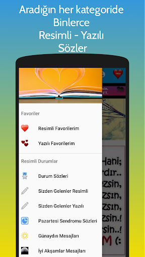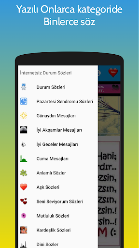 분리, 군인, 사랑, 어머니의 날, 의미있는, 철학적 단어, 좋은 저녁, 좋은 아침, 좋은 밤, P. 조미료, 무거운, 혈관, 생일, 자연, 종교, 우정, 금요일, 성공, 트럭 뒤, 흥미로운 정보, 기사, 결혼 기념일, 자동차 백, 벽 작성, 가죽, 재미있는, 형제단, longlings, 가죽, 행복, 동기 부여, 발렌타인 데이, 나는 당신에게 당신을 사랑한다, Vatan 거짓말, 거짓말, 새해, atatürk, hz.ali 단어
