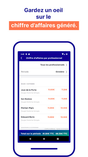 - Suivez le chiffre d’affaires généré au sein de votre établissement et détaillé par collaborateur