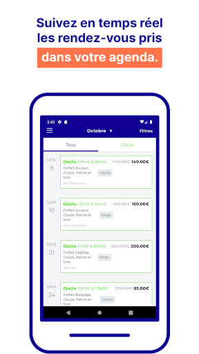 - Suivez en temps réel les rendez-vous pris sur votre agenda