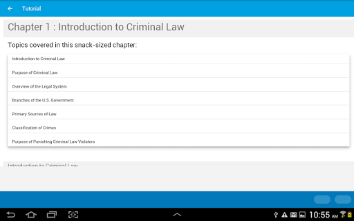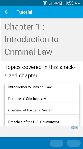 You have limited access to the content provided. For full access to the content, please login and purchase this application. This app provides a quick summary of essential concepts in US Criminal Law by following snack sized chapters: