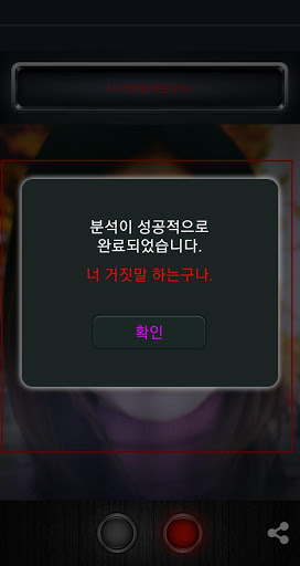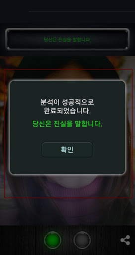 거짓말이나 실제는 당신의 얼굴과 목소리에 의해 결정되지 않습니다. 이 응용 프로그램은 장난 응용 프로그램입니다-사람이 거짓말인지 실제로 감지하지 않습니다.