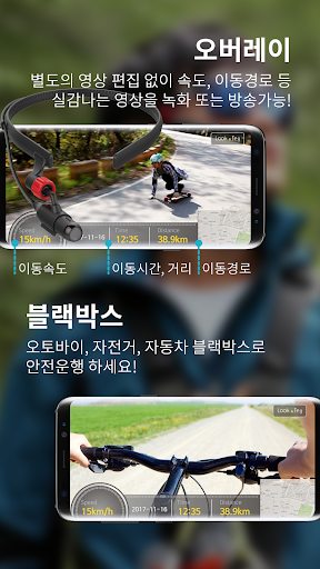 - GPS 오버레이 기능은 영상녹화, 유튜브라이브, 페이스북 라이브에서 별도의 장비와 편집없이 실시간으로 사용 가능합니다.