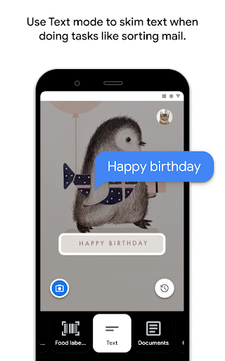 • 문서 모드로 텍스트 전체 페이지를 읽으십시오. 문서의 스냅 샷을 찍고 Lookout은 텍스트를 스캔하여 화면 판독기로 소리내어 읽거나 휴대 전화에서 확대 할 수 있습니다.