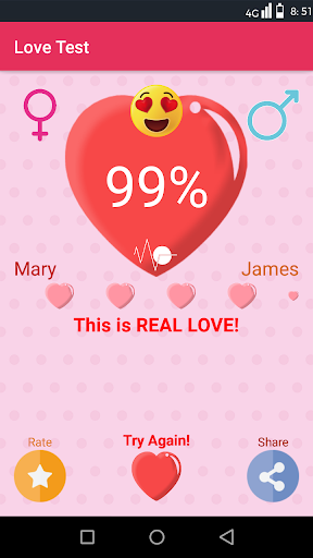 "사랑 테스트" '두 사람이 함께하기위한 것이라면 매우 복잡한 알고리즘으로 장난 앱을 확인하십시오. 몇 가지 옵션 :