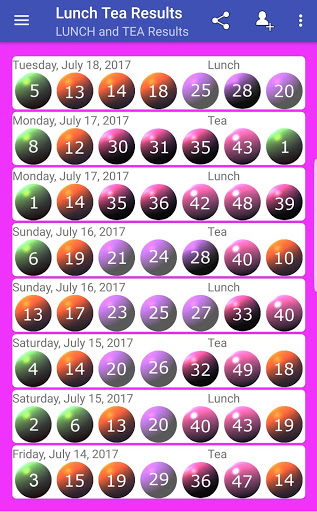 Lunch and Tea Lotto Results is an app for checking Lunchtime and Teatime results and more.