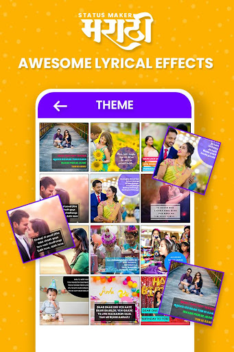 Marathi Song 가사의 훌륭한 컬렉션을 가지고 있습니다. 좋아하는 가사를 선택하고 사진에 추가하고 자신의 사진의 서정적 인 비디오를 만들고 사진을 사용하여 당신의 사랑으로 당신의 감정을 공유하십시오. lyrical video ...에 서정적 인 비디오 30 초 생성. 음악이있는 비디오 컨버터로 사진과 함께 사진과 음악에서 비디오를 만듭니다. 선택한 이미지를 선택하고 좋아하는 Marathi 노래를 선택하고 Awesome Marathi Lyrical Video Maker를 만듭니다. 소셜 미디어, 친구 및 여자 친구를 저장하고 공유 할 수 있습니다.