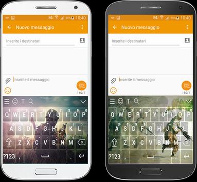 4. Click the THEMES to switch to different keyboard with backgrounds of military.