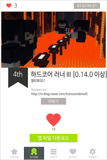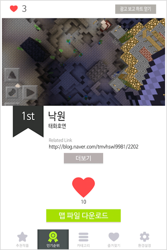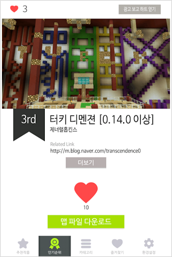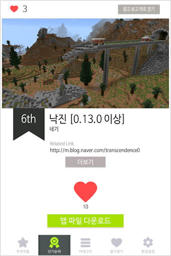 : 다운로드 횟수를 토대로 맵의 인기순위가 정해집니다.