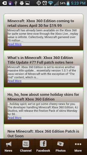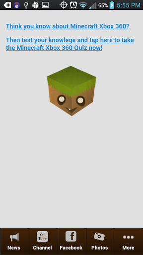 The Minecraft Xbox 360 Game App gives users the latest super fan updates and in the game itself, crafting has never been faster and easier! If you want to stay in Minecraft mindset, you need this master app for minecraft xboxApp Features:* Exclusive updates as they happen* Cheat videos* Mods,seeds and texture pack updates* facebook twitter instant share* Fun filled photo galleries * Minecraft Xbox Quiz* Minecraft resourcesGrab this app now! Minecraft fanatics.-- Feedback --If you have any suggested features or improvements please leave a comment, or send me an email at mobileappmogul @ gmail com.In case something is not working correctly please let me know, I'll be glad to fix that.Please post comments and feedback. When posting low rating please describe what is wrong to give the possibility to fix that issue.DISCLAIMER:This app will add a new icon on your home screen that links to a Games, Apps and Android Tricks mobile web page. If you do not want to use this awesome page, you can either ignore it or delete it. If you do use it, we get help promoting this app and make a few cents, it will also help us keep developing more great apps.