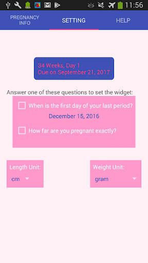 To set the widget, you need to provide your pregnancy related information in the SETTING tab.