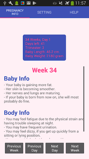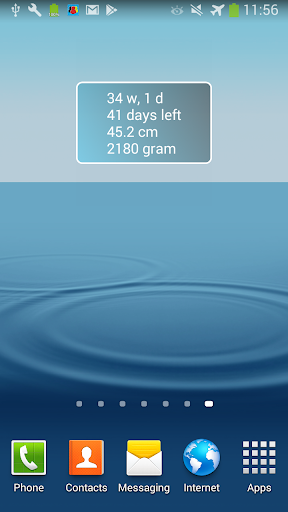 This app widget attaches to your home screen and shows your pregnancy related info everyday. This information includes your current pregnancy week and day, the number of days left until your due date, your baby current length and weight.
