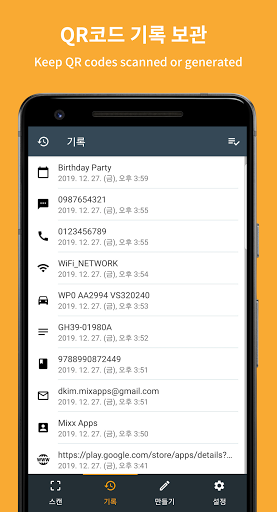 • QR 코드 / 바코드 스캔 이력 관리