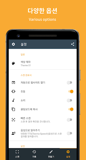 모든 유형의 QR코드와 많은 유형의 바코드를 빠르게 스캔할 수 있습니다.