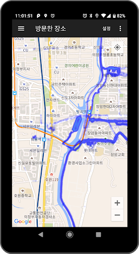 구글맵에 방문했던 곳을 시각화하여 보여줍니다.