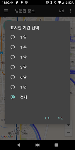 - 1일 ~ 1년 또는 전체 위치를 지도에 표시