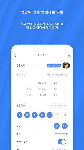모닝콜부터 다양한 상황에 필요한 알람까지 마이알람돌은 (MyAlarmDol) 최애하는 K-POP 아이돌의 달콤하고 멋진 목소리로 피곤한 하루가 행복으로 가득차게 될 거예요!