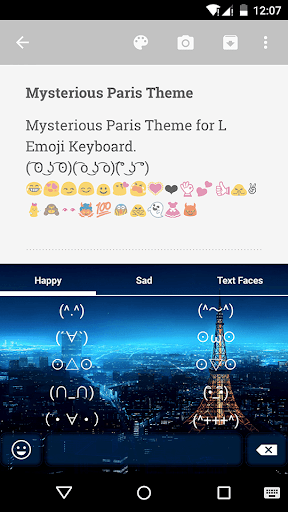 L Emoji Keyboard is a free, smart and colorful Emoji Keyboard for Android that help you to fast input over 3000 emoji, emoticons, smiley, sticker and text face conveniently everywhere including message, text, email and chat with social app etc. It’s the best Emoji Keyboard for Android with over 100 beautiful themes, smart gesture type and auto correct, highly customization with color, layout, font and over 55 languages support.