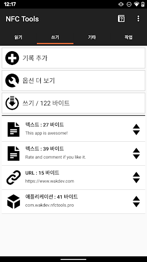 다음 NFC Tools를 사용하여 NFC 도구를 테스트했습니다: