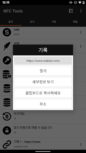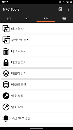 NFC 태그 복사, 지우기 및 암호 보호와 같은 다른 기능은 "기타" 탭에서 사용할 수 있습니다.