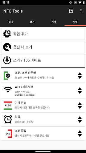 그러나 이 앱은 한 단계 더 나아가 NFC 태그에 작업을 프로그래밍하여 한 때 지루하게 반복되던 작업을 자동화할 수 있도록 합니다. Bluetooth를 켜고, 알람을 설정하고, 볼륨을 제어하고, WiFi 네트워크 구성을 공유하는 등의 작업을 수행합니다.