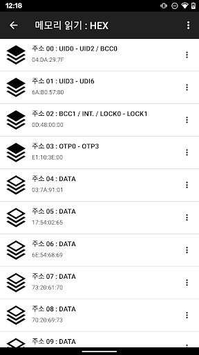 - 마지막으로 태그에 포함된 모든 데이터 (NDEF 기록).