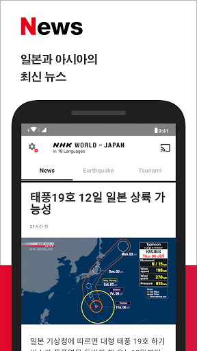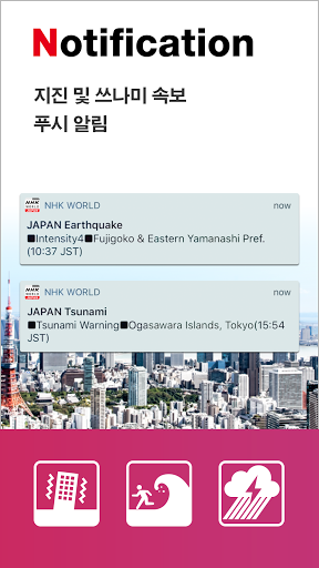 - 지진 및 쓰나미 속보 푸시 알림 *영어와 중국어