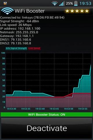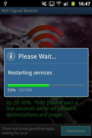 This is a advanced tool for to increase power to the WiFi signal.This WiFi Booster app will boost your WiFi signal by 2 -30% with just the click of a button! It works by running well-known commands and tweaks which improve your WiFi signal. It is probably the most advanced WiFi booster on the Google Market.Speed up your internet with this app. You will not be disappointed with the results. This is the easiest to use because this app will re-run itself whenever you switch networks, so you do not have to keep on running it manually.One thing to note is, this app is device dependent and results on different devices may vary. Most phones are currently supported. We are working hard to support all phones, this app will be updated constantly. Follow us on Google Market.Tested with: HTC Sensation XL, Samsung Galaxy Note, Samsung Galaxy S3 I9300 32GB, HTC One X+, Samsung Galaxy S3, Motorola RAZR XT910, lg Optimus 4X, Samsung Galaxy Note, HTC One X, Samsung Galaxy s2 LG Optimus 3D Max, HTC Sensation XE, LG Optimus 3D P920, Motorola Atrix 2, Sony Ericsson Xperia Arc S, Sony Xperia S, LG Optimus L9, HTC Desire SV
