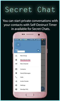 NewApp Messenger 2018 : Secret Chat online & Call won’t save such chats and it has a self-destruct timer. You can set the timer accordingly and the countdown starts once the recipient has read the message. At the end of the timer, the entire chat on both phones gets deleted. If you sent photos, videos and other types of files in a secret chat, they will also get wiped out.