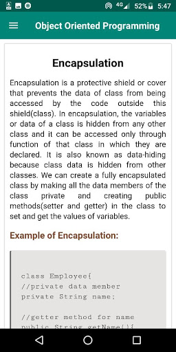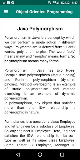 This application is developed for beginners who want to learn about object oriented programming concepts.