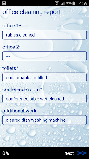 이 앱을 통해 상업용 청소 회사는 모든 사무실 청소 작업에 대한 자세한 작업 보고서를 신속하게 만들 수 있습니다.