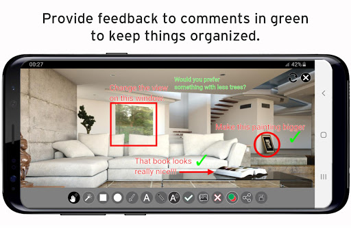 OnMarkup은 원하는 방식으로 이미지를 표시하는 완벽한 도구입니다.또한 필요한 경우 수정 도구로 앱을 사용할 수있는 간단한 워크 플로우가 있습니다.빨간색을 정정하고 녹색 및 체크 표시를 사용하여 해당 의견에 대한 피드백을 제공합니다.프로덕션 도구로 사용하는 사진이나 스크린 샷을 마킹하는 것부터 onmarkup은 가장 좋은 옵션입니다.