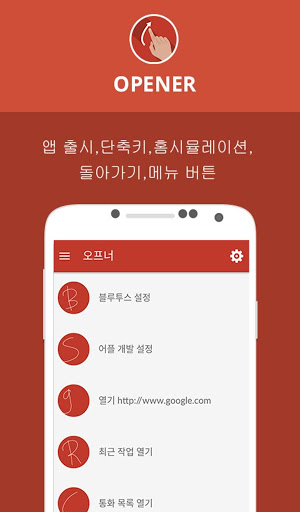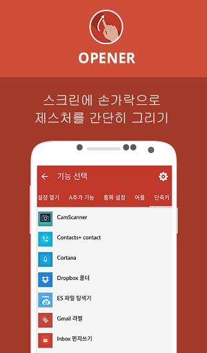 오프너는 당신이 정한 제스처로 원하는 앱으로의 바로가기를 가능하게 합니다.