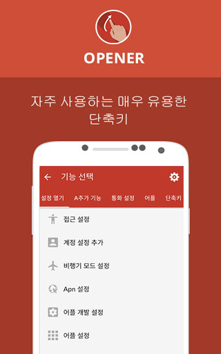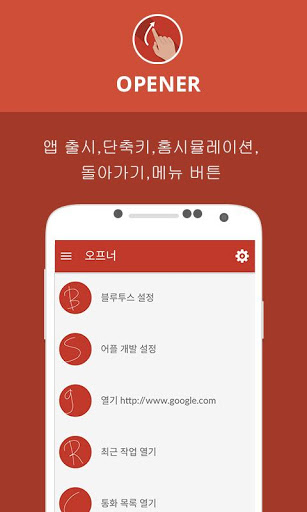 오프너는 당신이 원하는 방식으로 앱을 작동시킬 수 있는 간편하고, 빠르고, 믿을 수 있는 앱입니다. 홈 스크린에 단순한 제스처 한 번으로, 빠른 경로로 앱을 작동시킬 것 입니다. 이것뿐만 아니라, 당신은 바로가기를 생성할 필요가 없습니다. 오프너가 휴대폰에 설치된 모든 앱으로의 접속을 가능하게 함으로, 사용자는 홈 스크린에서 원하는 제스처로 모든 앱 열기를 설정할 수 있습니다.
