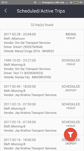 The following are the key features of the application which operator can use View Scheduled & Active Trips View Trip Details Modify Trip - Add employees, Remove employees, assign driver or vehicle, cancel trip etc.