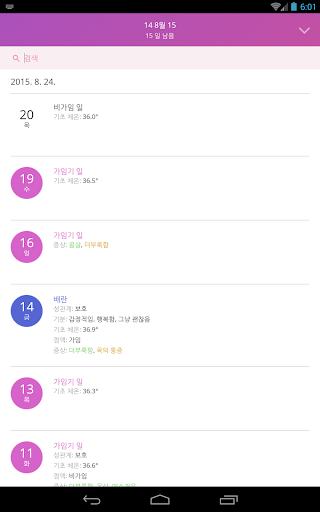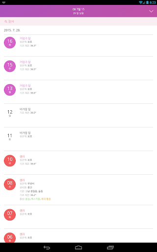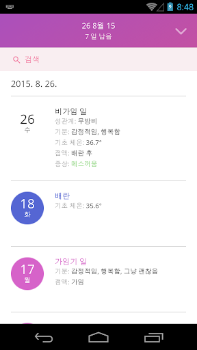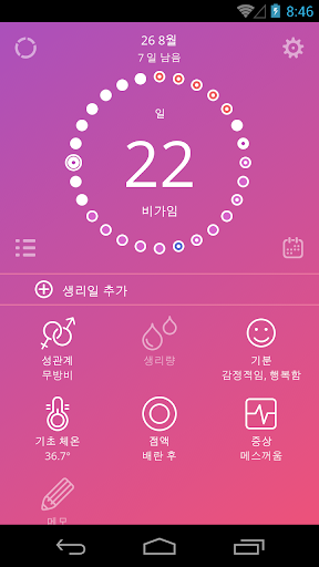7. 기분, 증상, 기초 체온, 성관계, 생리일, 분비물 등과 같은 사항에 대한 메모 및 자신 만의 메모 기능;