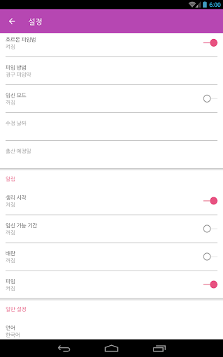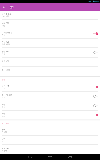 3. 설정 메뉴에서 생리 예측 날짜 조정;