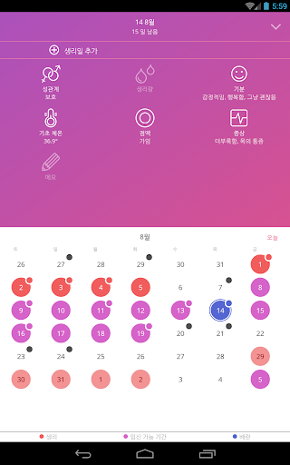 이 어플은 달력, 체온 및 자궁 점액 관찰을 통해 생리 주기를 모니터해서 임신 가능 기간의 시작 및 배란일을 더욱 정확하게 알아낼 수 있습니다.