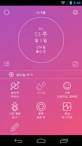 8. 출산 예정일까지 남은 주수 및 날짜 계산, 기분 변화, 증상, 메모 등 임신 기간 모니터;
