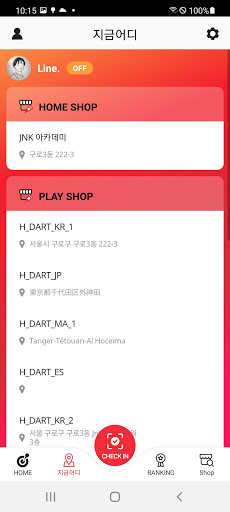 - 단골 숍으로 등록한 숍에서다트 바에서 플레이 중인 친구 찾기