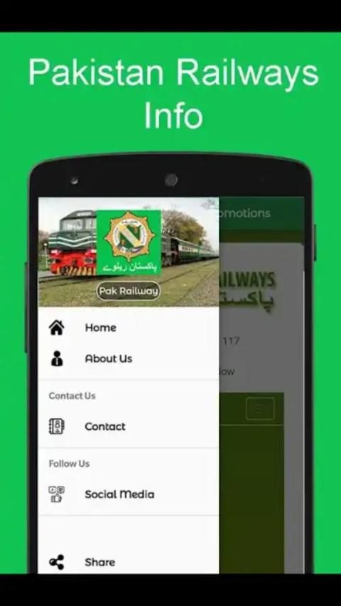 If there is any button not working on Pakistan Railway app then you can update app or connect internet to get full data access. In the menu you will get home and about us section and can also share Pakistan railway with friends. Railway system is improving in Pakistan and you will get better and better service every passing day.