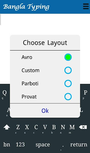 10) 변경 가능한 키보드 레이아웃. 당신은 발음 레이아웃과 Bangla 타이핑의 고정 레이아웃 사이를 전환 할 수 있으며 자신의 레이아웃을 만들 수 있습니다.자세한 내용은 도움말을 참조하십시오.
