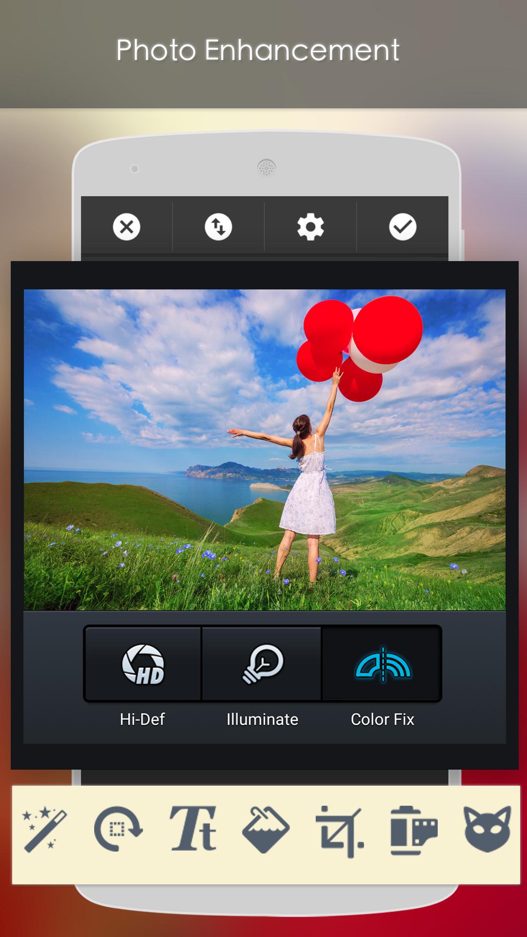 *) Enhance: Improve your photo with on tap.