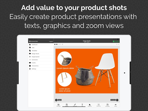 Create high-quality social media posts, banners and advertising materials directly from the Picmasters app with the edited images. Choose a templates from our gallery or create your own designs. Add Text, addional images or even zoom areas and export result as jpg.