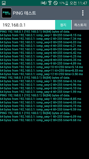 인터넷 연결상태를 확인할 수 있는 Ping 테스트 툴 입니다. 아래의 절차로 인터넷 연결상태를 확인할 수 있습니다. 1. Host 주소를 등록 - 아이피 : 192.168.0.1 - 도메인명 : google.com 2. 시작버튼 클릭 이용감사합니다. 추가적으로 필요한 기능이 있으면 리뷰를 통해 남겨주시면 적극 반영하겠습니다.