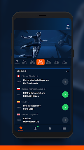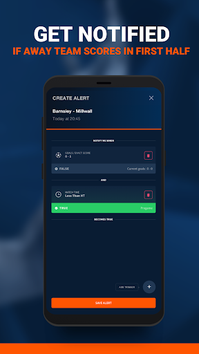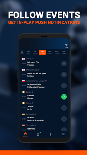 다음을 포함한 모든 작업을 수행 할 수있는 자체 개인화 된 알림을 만듭니다. 팀 시트;일치 시작;포인트 또는 목표 득점;반 시간 및 풀 타임 결과.확률이 특정 수준에 도달하면 알림을받을 수 있으므로 예측을 최대한 활용할 수 있습니다.