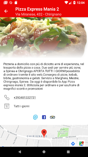 가정에서 피자를 운송하는 8 년 이상의 경험을 가진 홈 피자 가게.더 많은 영역을 제공하기위한 두 위치;Spinea와 Chirignago.매일 오픈하십시오!피자, 케밥, 청량 음료, 요리법 및 아이스크림의 배달.Marghera, Mestre, Chirignago, Sinea에서 서비스.오늘부터 Pizza Express Mania 2. 앱은 웅장 할인 및 프로모션을 이용할 수 있습니다.