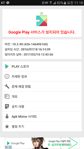 Google Play 서비스 정보, Google Play Services info
