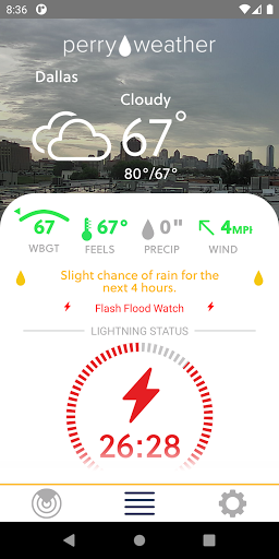 Perry Weather는 손바닥의 손바닥에있는 실시간 총 번개, 강수량 및 심각한 날씨 알림을 제공합니다. 코치, 트레이너, 리스크 관리자, 건설 노동자, 이벤트 기획자 등에서 더 많은 사람들은 페리 날씨와 함께 궂은 날씨 상황을 능동적으로 경고 할 수 있습니다. 이것은 무료 다운로드이지만 모든 사용자는 앱의 내용에 액세스하기 위해 페리 날씨에 가입해야합니다. 정의 된 설정. 우리의 독점적 인 경고 방법은 사용자가 야외 활동을 만료 및 재개 할시기에 대한 완전한 자신감을 제공합니다.