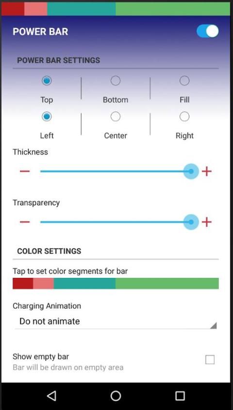 displays your current battery charge percentage by stretching across the top of your screen. When your battery is at 100%, it will stretch across 100% of your screen. As your battery charge gets lower